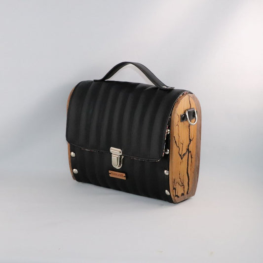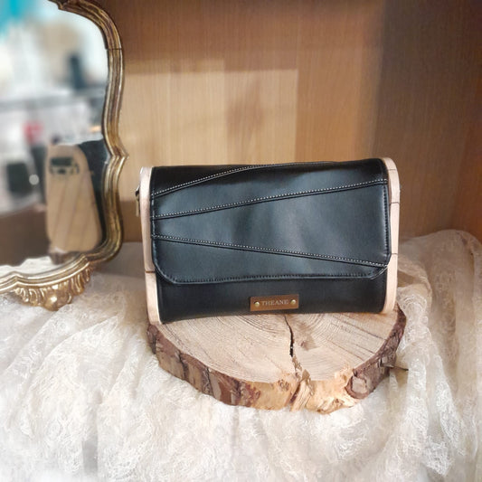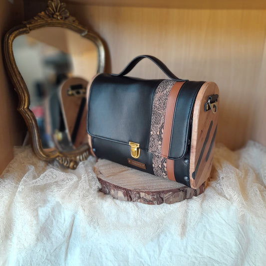Mini sac bois et alter-cuir de raisin sable et noir 111