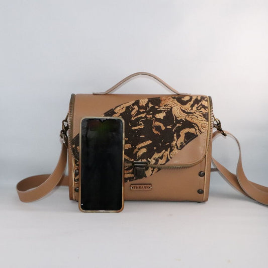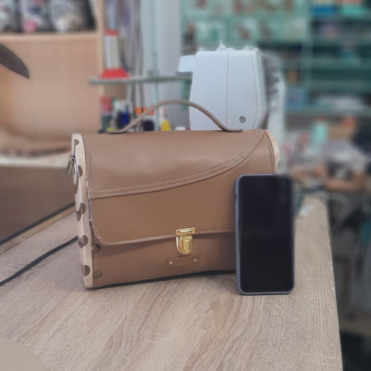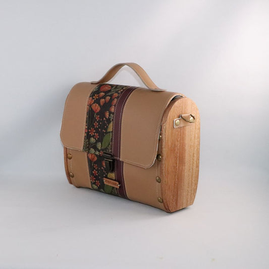 Petit sac cartable bois et alter-cuir de raisin camel 65