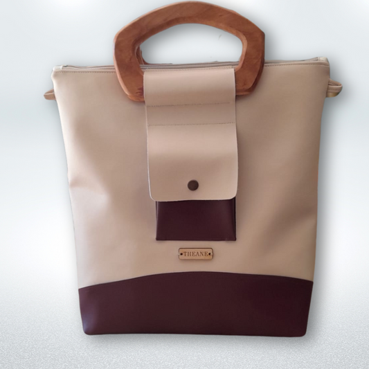 Sac cabas alter-cuir de raisin sable poignées en bois 129