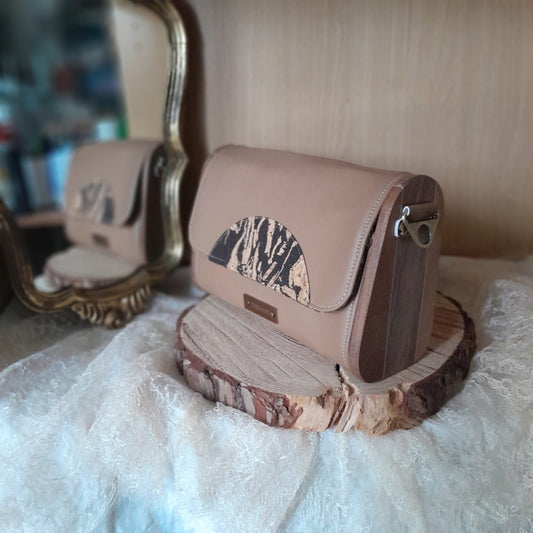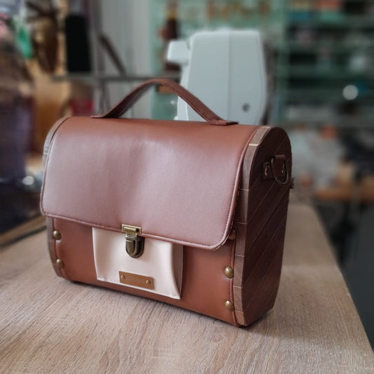 Petit sac cartable bois et alter-cuir de raisin camel 71