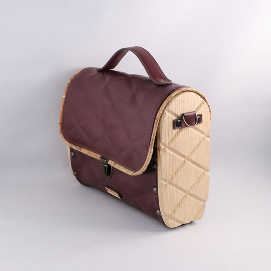 Petit sac cartable bois et alter-cuir de raisin bordeaux matelassé 43