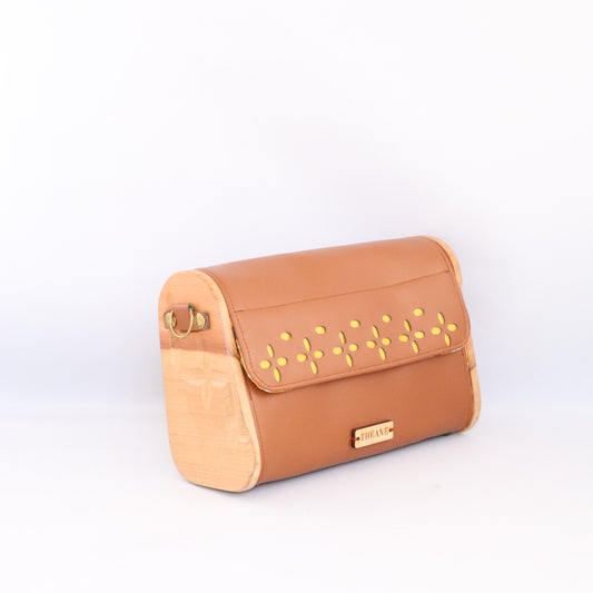 Petit sac cartable bois et alter-cuir de raisin caramel 148