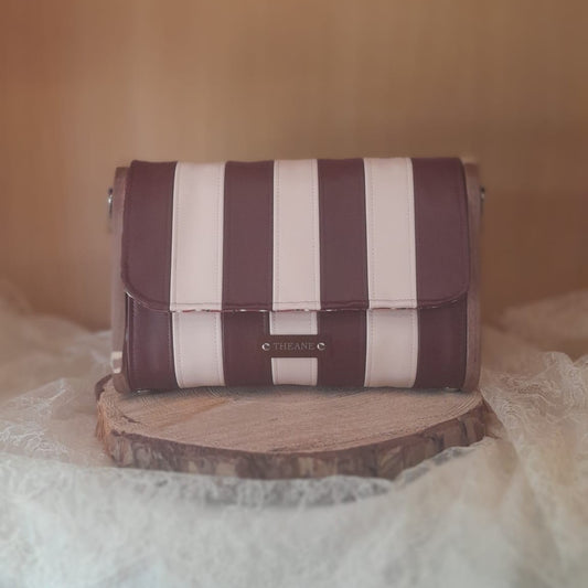 Mini sac bois et alter-cuir de raisin bordeaux et sable 150