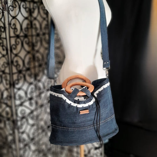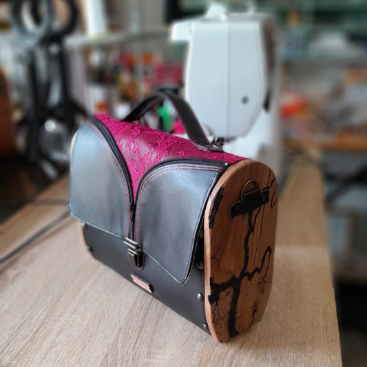 Petit sac cartable bois et alter-cuir de raisin noir et dentelle 91