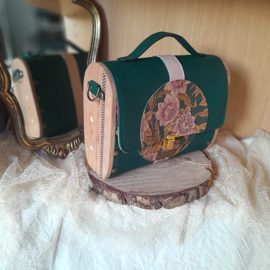 Petit sac cartable bois et alter-cuir de raisin vert 87