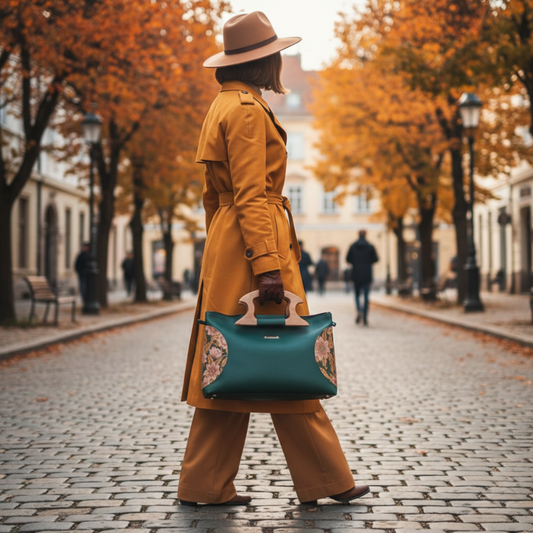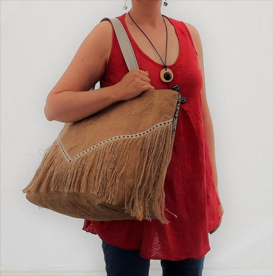 Sac alter-cuir de raisin camel poignées en noyer 105