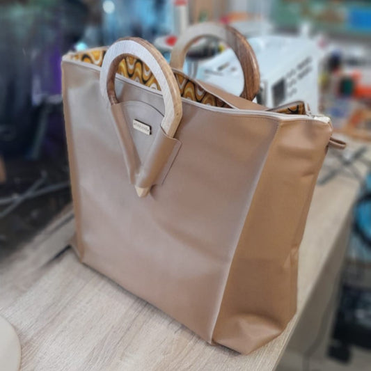 Sac cabas alter-cuir de raisin sable poignées en bois 129