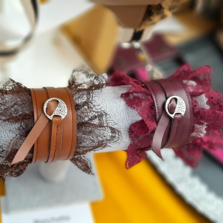 Ajoute une touche chic à ton look avec ce bracelet manchette réglable en alter-cuir de raisin et dentelle de Calais. Un bijou original, doux pour la planète et 100 % stylé !