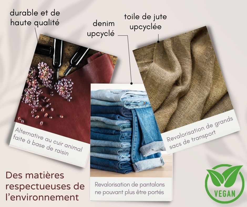 Découvrez ce petit sac cartable unique, fruit d'une collaboration entre deux artisans passionnés, spécialisés dans le travail du bois et de la maroquinerie végétale. Conçu à partir d'alter-cuir de raisin, une alternative innovante et écologique au cuir animal, et sublimé par des côtés en bois, chaque sac est une pièce exclusive qui reflète un savoir-faire artisanal exceptionnel.